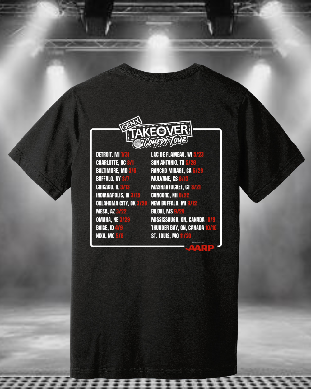 Celebrate your love for laughs with the Official Gen-X Takeover Tour Tee! This playful shirt brings a fun vibe to your wardrobe, perfect for comedy fans who want to show off their good taste in humor. Comfortable and stylish, it’s your go-to for the next show—or just for making every day a little funnier.